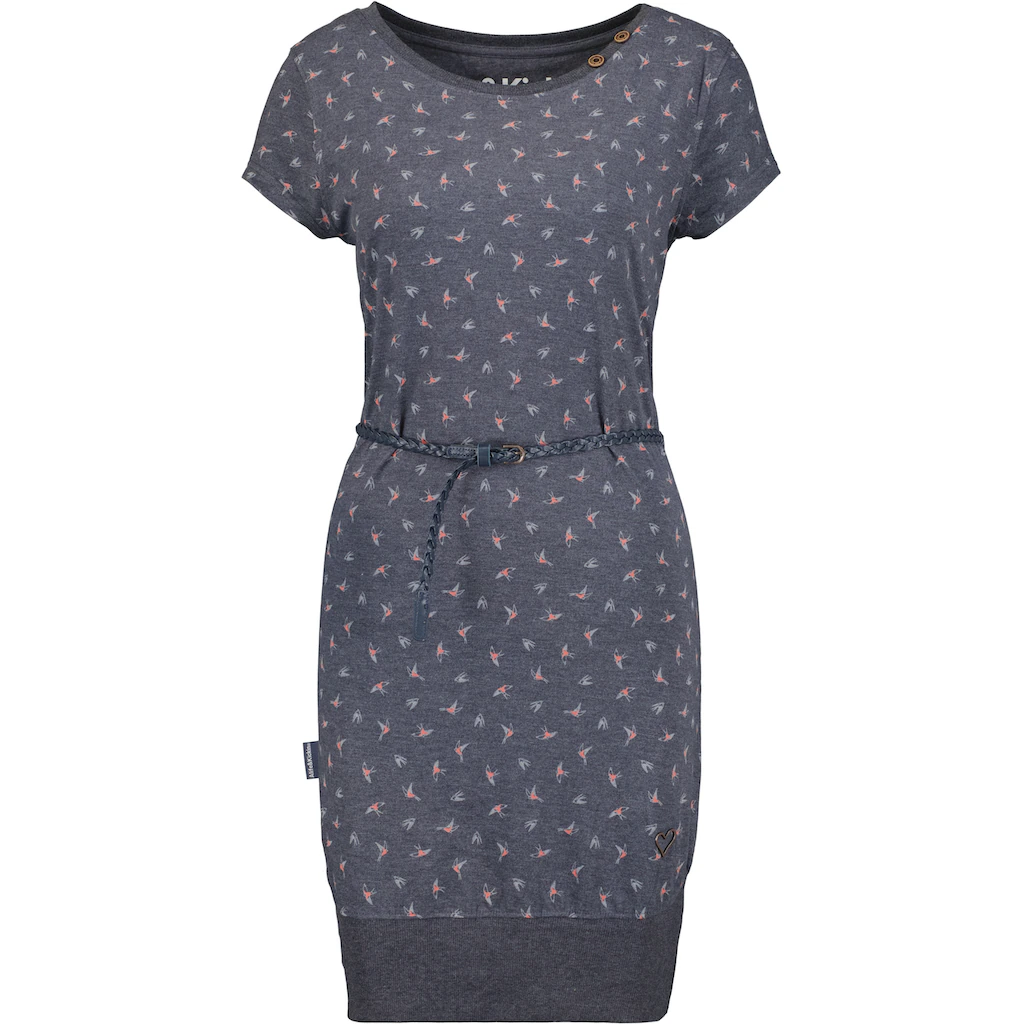 Mit Leidenschaft und Liebe zum Detail verkörpert das neue Kleid CocoAK einen frischen und trendigen Lifestyle. Natürlich, feminin, sportlich – das Sommerkleid ist absolut vielseitig und begeistert mit perfekter schmaler Passform in knieumspielender Länge. Den Abschluss am Saum des Damenkleides bildet ein breites Rippstrickbündchen, das für komfortablen Sitz sorgt. Liebevolle Details wie das kleine Markenherz und die Label-Zierknöpfe am Rundhalsausschnitt veredeln das kurzarm Kleid für Damen. Erwähnenswert ist auch der farblich abgestimmte Gürtel auf Taillenhöhe, der mit einer Dornschließe versehen ist und durch die geflochtene Optik individuell einstellbar ist. Der dezente Alloverprint verspricht Natürlichkeit, die kombiniert mit Sneakers oder Sandalen eine sportive Komponente erhält und vor allem im Sommer und in der Freizeit für Lebendigkeit sorgt. Lass Dich verführen von frischem trendigem Lifestyle – CocoAK Dress das brandneue Jerseykleid von Alife and Kickin.