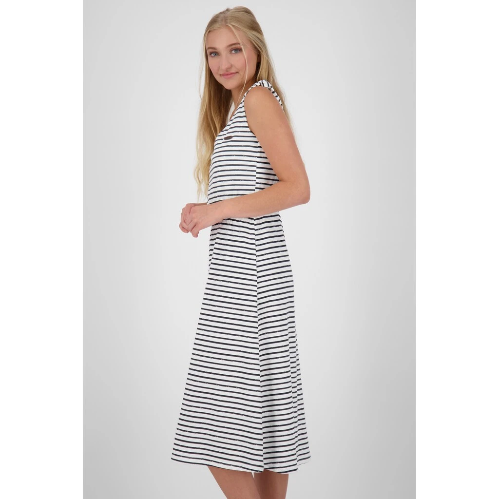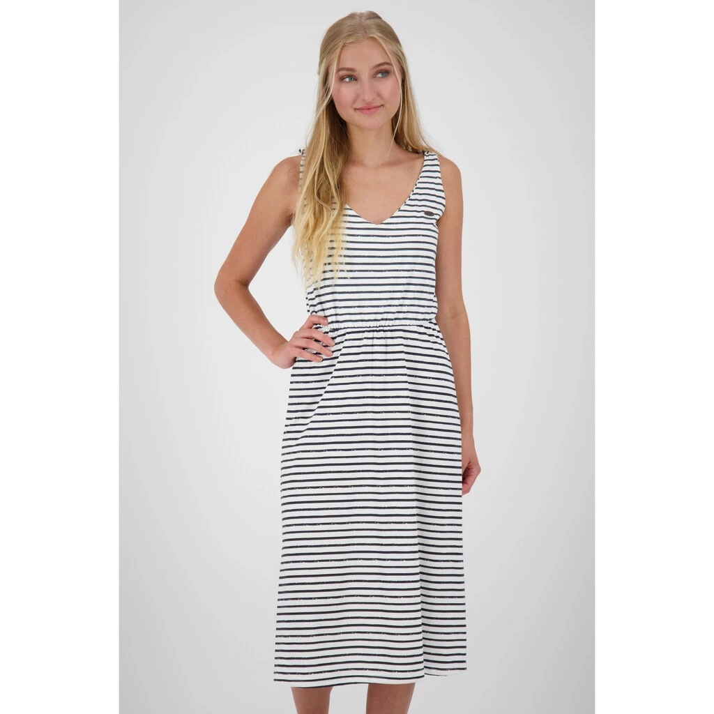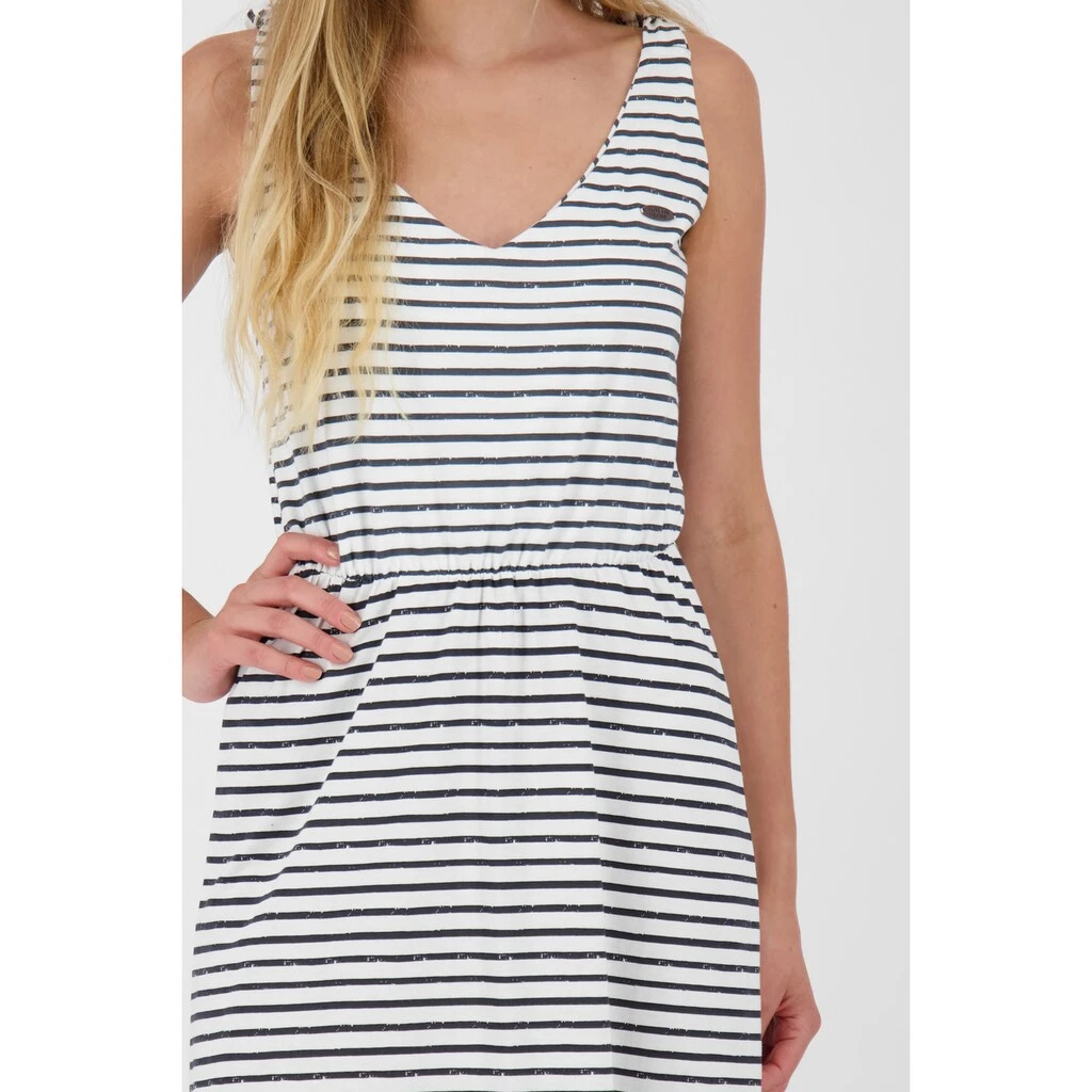 Kannst Du auch schon den Sommer fühlen? Wir auf jeden Fall mit dem neuen Damenkleid MelinaAK von Alife and Kickin. Egal ob ausgedehnte Spaziergänge am Strand oder einen Besuch in der Pizzeria, das hübsche Trägerkleid ist genau das Richtige. Hervorgehoben wird das Kleid durch die angesagte Streifenoptik in wunderschöner Farbgebung. Ein tiefer V-Ausschnitt zaubert ein tolles Dekolleté, die leichte Raffung der Taille sorgt für einen fließenden Übergang und macht eine tolle Figur. Dank des weichen Materials trägt sich das Sommerkleid wunderbar angenehm auf Deiner Haut. Aber dem nicht genug – die modische Länge erlaubt Dir eine Kombination mit Zehensandalen, Sneakern oder Pumps – ganz nach Lust und Laune. Hol Dir Dein neues Lieblingsteil mit dem ärmellosen Freizeitkleid MelinaAK von Alife and Kickin.