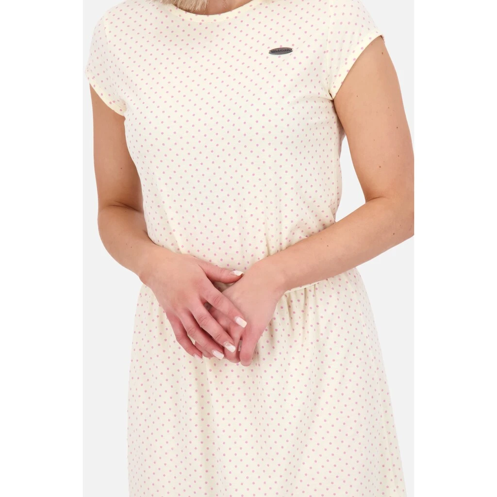 Komplettiere Deinen Kleiderschrank mit dem entspannten Sommerkleid ShannaAK B von Alife and Kickin. Eine unkomplizierte Kleid-Variante um Deine Sommer-Garderobe einen absoluten Frische Kick zu verleihen. Das hübsch gemusterte Damenkleid überzeugt mit seiner trageangenehmen Eigenschaft, die durch die weiche Jerseyqualität erreicht wird. Ein Gummizug in der Taille betont auf feminine Art und Weise Deine weibliche Mitte, der luftig gehaltene Rockteil schafft viel Beinfreiheit, was in der Freizeit, am Strand oder auch im Job einen positiven Aspekt hervorruft. Klassische Elemente wie der eingefasste Rundhalsausschnitt und die kurzen Ärmel runden das feminine Erscheinungsbild des Freizeitkleides perfekt ab. In Kombination mit Zehensandaletten ist das Kleid für Damen besonders im Sommer eine erstklassische Wahl. Fühl Dich frei und ungezwungen mit dem neuen kurzen Jerseykleid ShannaAK B von Alife and Kickin.