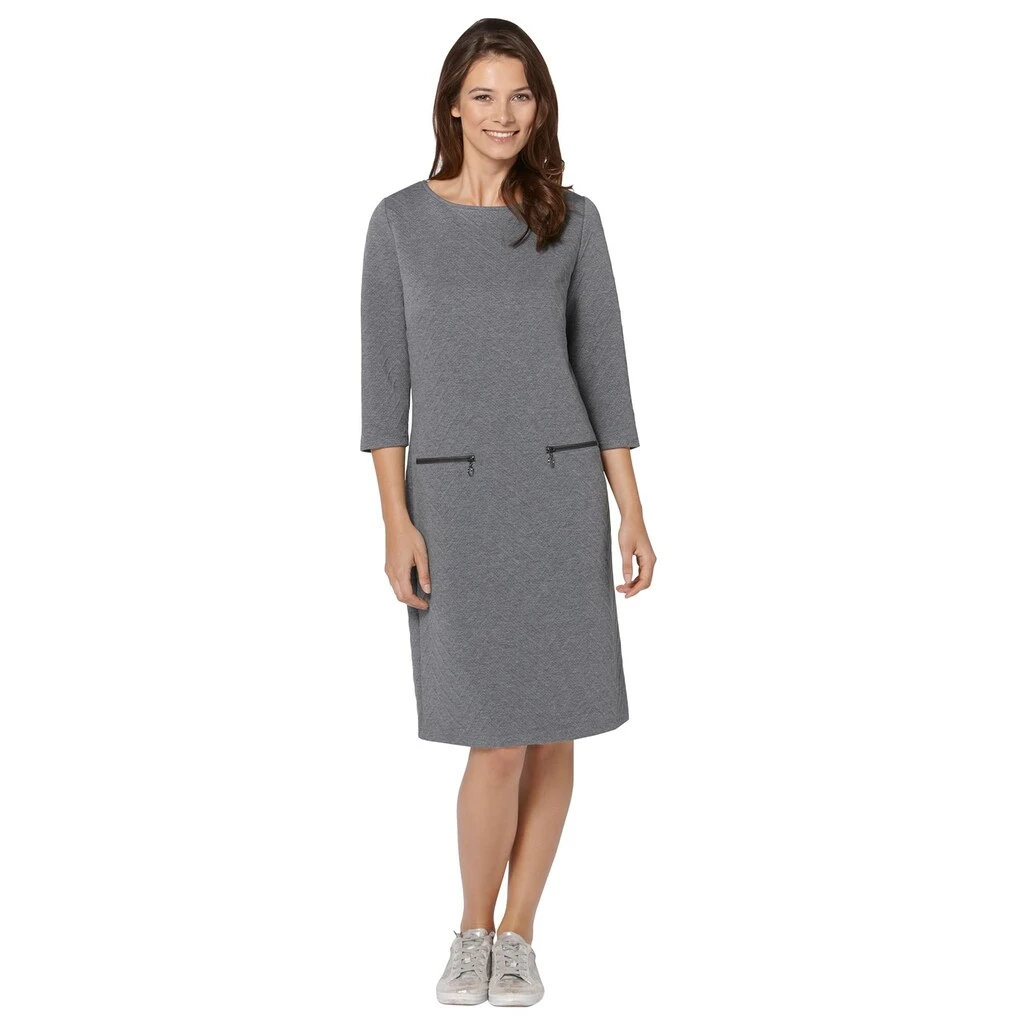 Unser Jersey-Kleid für alle Fälle: bequem, schick und total modern! Die effektvolle Jersey-Jacquard-Qualität mit Zick-Zack-Struktur sorgt für den eleganten Look, der Stretch-Anteil für maximalen Komfort und der Schnitt für die trendstarke Optik. Mit Rundhals-Ausschnitt, 3/4-langen Ärmeln und zwei seitlichen Zier-Reißverschlüssen. 80% Polyester, 18% Viskose, 2% Elasthan. Maschinenwäsche.