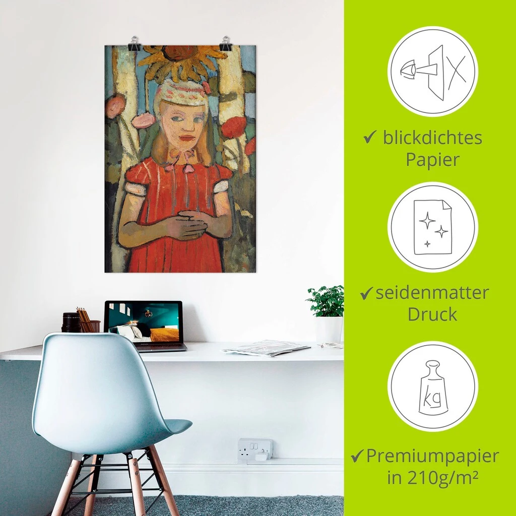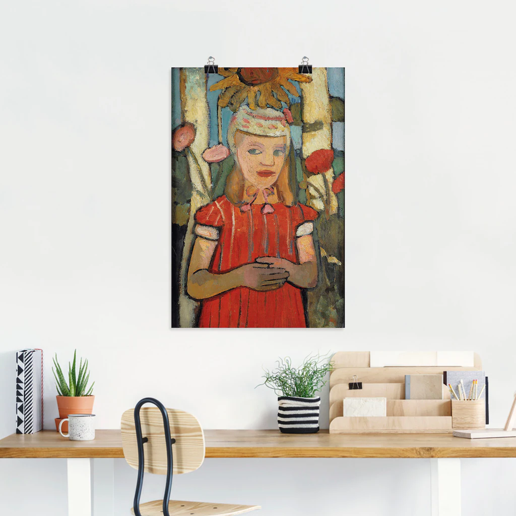 Artland Wandbild »Mädchen In Rotem Kleid Vor Sonnenblume.«, Bilder Von Kindern, (1 St.), Als Alubild, Leinwandbild, Wandaufkleber Oder Poster In Versch. Größen