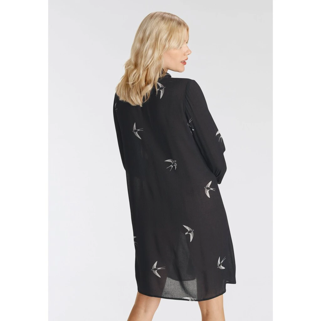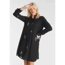 Mit dem Allover-Print wird dieses Blusenkleid der Marke Boysen’s nie langweilig. Es ist nach unten hin weiter und reicht bis über die Knie. Der Stehkragen schützt den Nacken vor Zugluft und sieht klassisch aus und die langen Ärmel schließen mit einer Manschette ab. Dank des weichen Webstoffs überzeugt das Hemdblusenkleid mit einem leichten Tragegefühl.