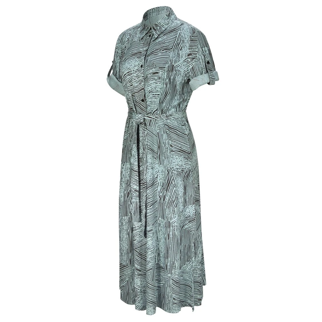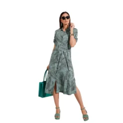 Luxus zum Hineinschlüpfen: wunderschön bedrucktes Kleid aus reiner, weich fließender Viskose mit sanft ausgestelltem Rockteil – so fällt es schön weit und schmeichelt der Figur. Mit Hemdblusenkragen, durchgehender Knopfleiste, Gürtelschlaufen und modischen 3/4-Ärmeln mit fixiertem Umschlag, die dank Riegel und Knopf in der Länge variiert werden können. Schönes Detail: der farblich abgestimmte, abnehmbare Bindegürtel. Figurformende Nähte sorgen für die tolle Passform. Der hohe Schlitz vorne und die Seitenschlitze sorgen für optimale Bewegungsfreiheit. 100% Viskose. Maschinenwäsche.