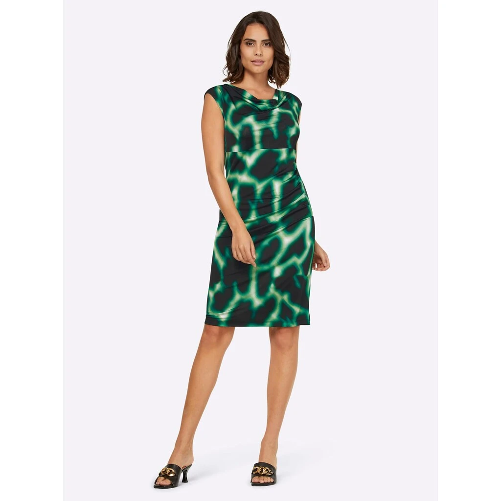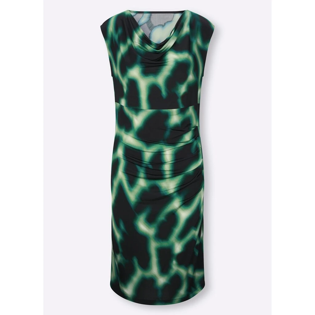 Jersey-Kleid Mit attraktivem Animal-Print, inverführerischer Etui-Form. Mit Wasserfall-Ausschnitt, modisch überschnittener Schulter und formgebenden Abnähern hinten. Seitlich reizvoll in Falten gelegt. 95% Viskose, 5% Elasthan. Maschinenwäsche.