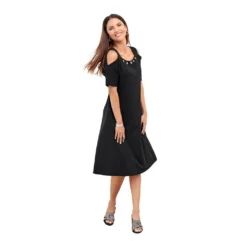 Das Jersey-Kleid setzt dank der Cut-Outs Ihre Schultern raffiniert in Szene. Trendige Ösenverzierung vorne am weiten Rundhals-Ausschnitt. In schmeichelnder A-Linie mit überschnittenen Schultern, breiten Trägern und Teilungsnaht in der Taille. Die angenehm weiche und dabei wunderbar formstabile Interlock-Qualität zeichnet nicht ab. 70% Viskose, 5% Elasthan, 25% Polyester. Maschinenwäsche.