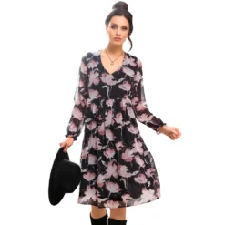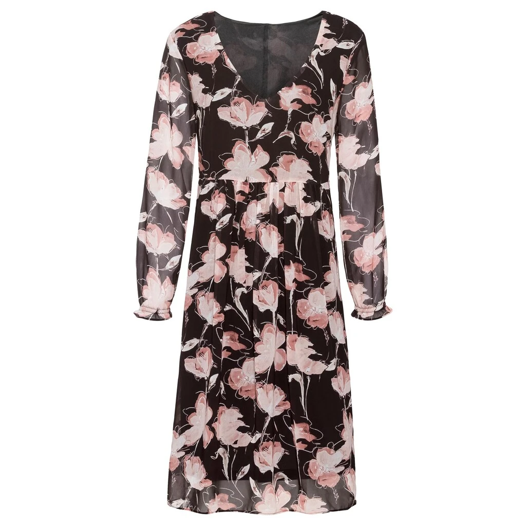 Mit einem Kleid wie diesem sind Sie immer schnell schick angezogen. Komfortabler Schnitt zum Reinschlüpfen, mit tiefem V-Ausschnitt, elastischer Taillennaht und ausgestelltem Rockteil. Lange Ärmel mit Gummibündchen. 100% Polyester. Futter: 100% Polyester. Maschinenwäsche.