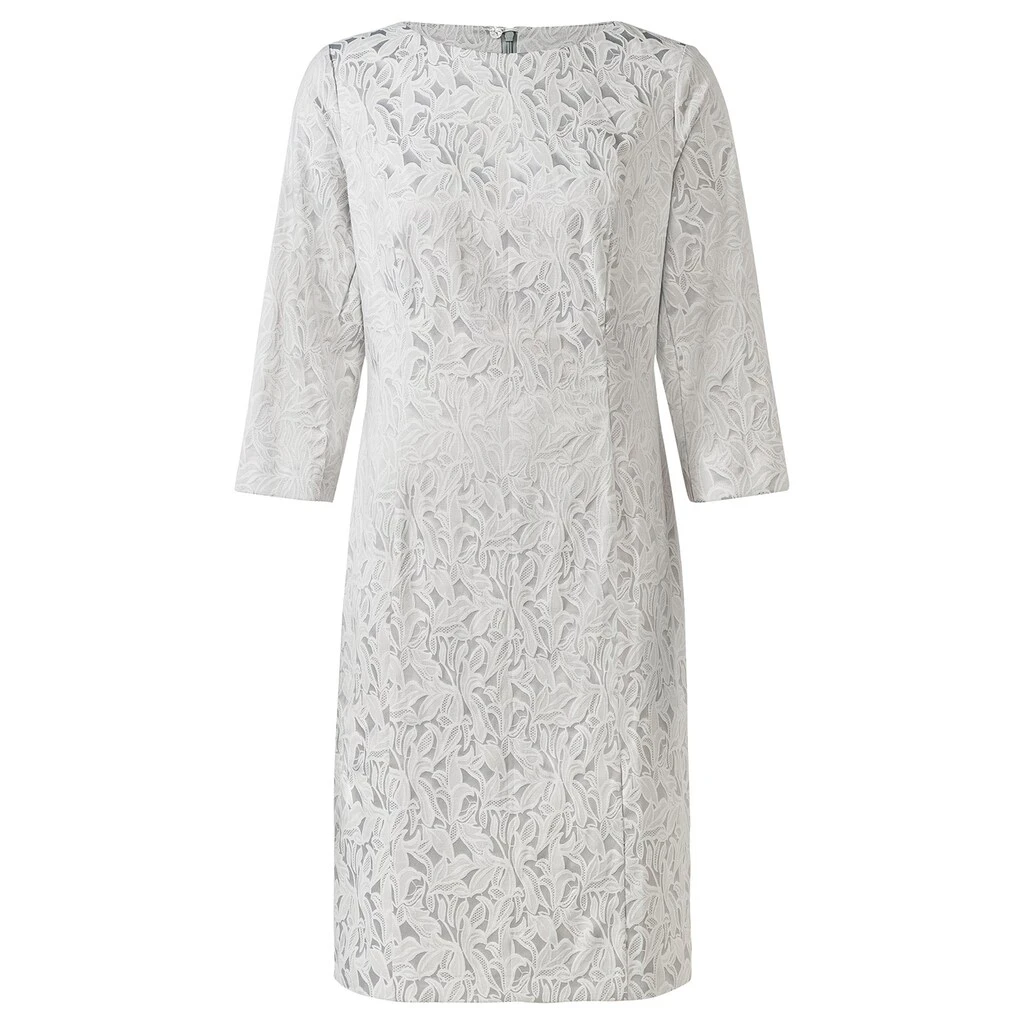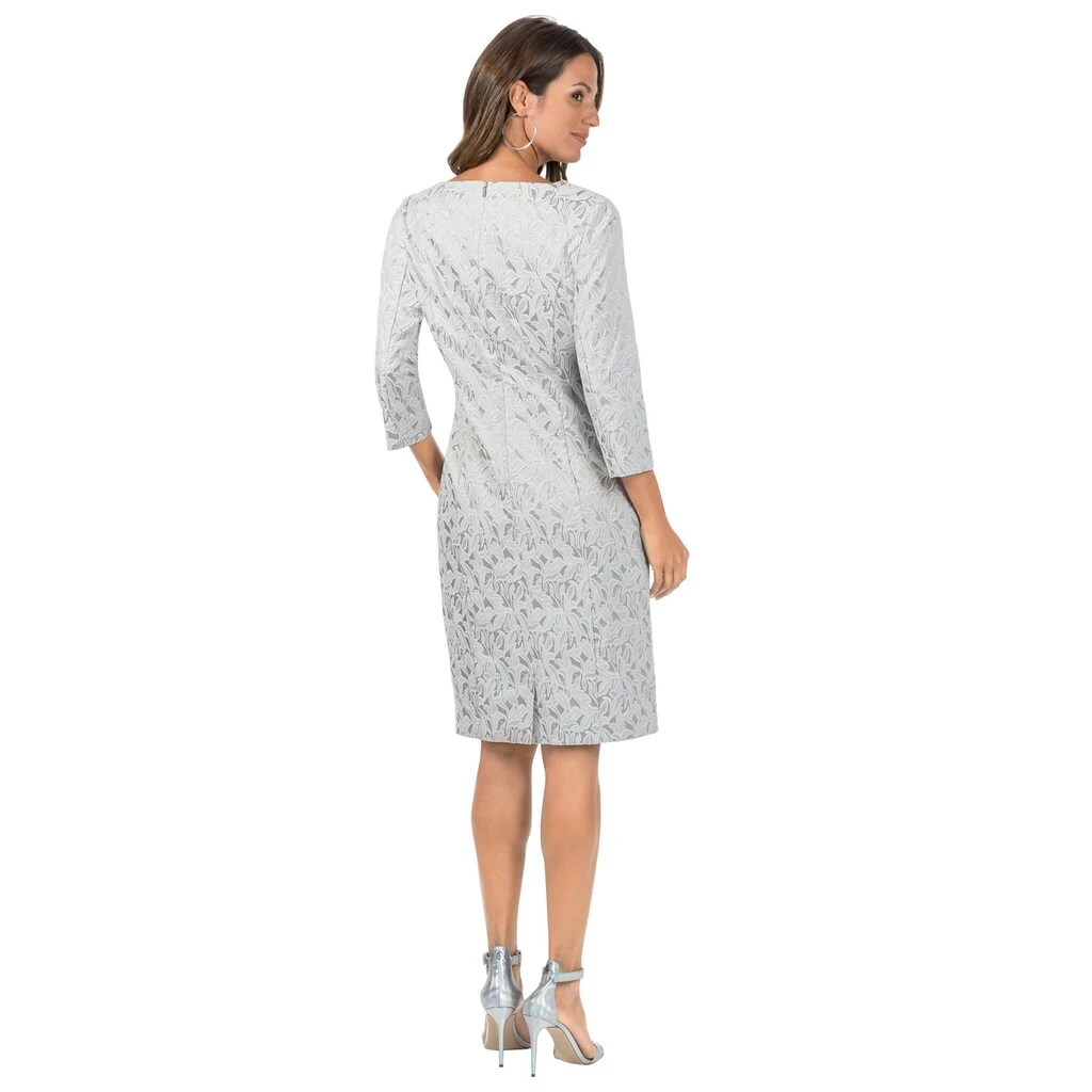 Dieses Kleid zaubert eine wunderbar feminine Silhouette! Sehr elegant durch die hochwertige Jacquard-Qualität im Blätterdessin. Dezenter U-Boot-Ausschnitt, 3/4-Ärmel, formgebende Wiener Nähte vorne und hinten, Teilungsnaht hinten. Nahtfeiner Reißverschluss hinten bis zur Hüfte, innen gesichert mit elastischem Schlaufenknopfverschluss. Verdeckter Gehschlitz hinten. Body gefüttert, so fällt es besonders schön! Mit dem Kauf unterstützen Sie die Initiative Cotton made in Africa. 60% Baumwolle, 38% Polyester, 2% Elasthan. Futter: 100% Polyester. Maschinenwäsche.