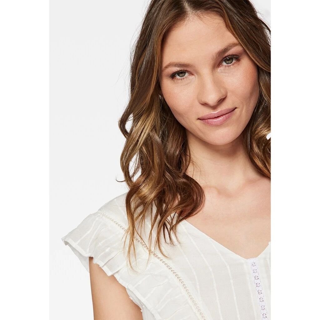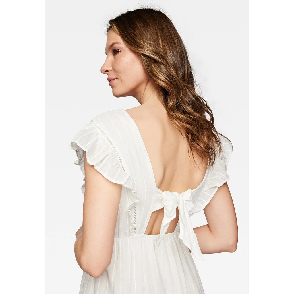 - Ausgestelltes Kleid mit V-Ausschnit und Kurzarm mit Volants