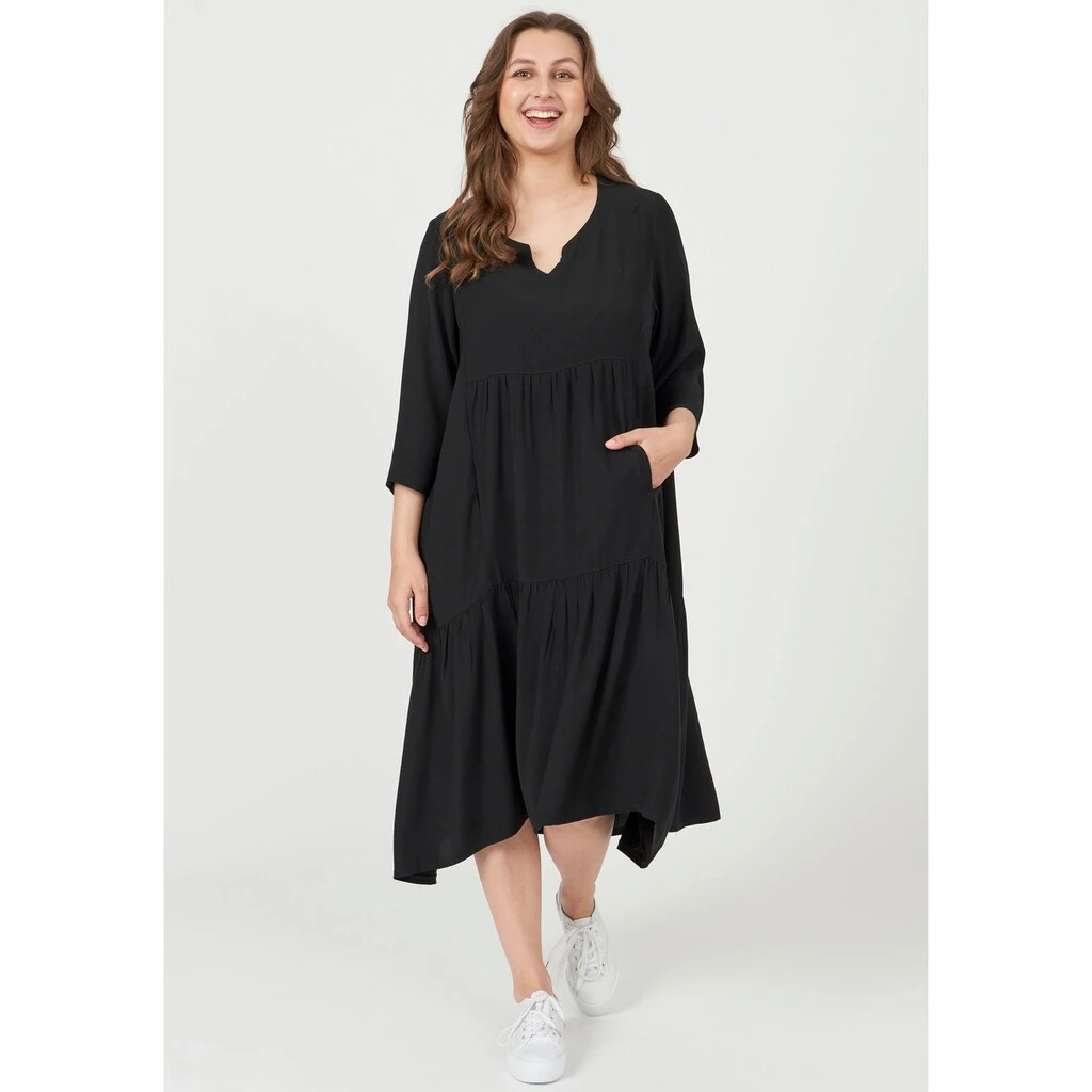 Ohne großen Aufwand hübsch angezogen sein: Das geht mit diesem Volantkleid von Pont Neuf! Ein sportlicher Touch wird dem Gesamtbild mit den praktischen Eingrifftaschen verliehen. Das Stufenkleid ist durch die fließende Viskose-Qualität angenehm zu tragen.