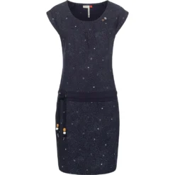 LOOK: Leichtes Sommerkleid mit angesagtem Allover Print und Bindeband vom urbanen Trendlabel Ragwear, 100% vegane HerstellungMATERIAL: Leichtes Stretchkleid aus elastischem, weichem Baumwollmaterialmix und modischem Alloverprint, das Strandkleid ist super angenehm zu tragenPASSFORM: Super Länge bis ca. Mitte Oberschenkel, figurbetont, durch das Kordelzugband individuell anpassbar, sportlich, passt sich toll der Silhouette anDETAILS: Minikleid mit hochwertigen Kunstlederlogopatches, seitlichem Taillenzugband mit dekorativen Holzperlen und Zierknöpfe am AusschnittDieses Damen Printkleid von Ragwear ist ein echter Allrounder für die warme Jahreszeit, ein super bequemes Shirtkleid mit viel Liebe zum DetailLeichtes Damen Baumwoll Kleid von RagwearSehr weiches, angenehm zu tragendes SommerkleidTop Qualität, hochwertige, vegane VerarbeitungDas Stretchkleid schmiegt sich wunderbar an den KörperKordel-Taillenzugband mit Logo geprägten Holzperlen (seitlich zum Binden)Sommerliches Allover PrintmusterAngedeutete Ärmel mit kleinem Krempelaufschlag2 seitliche EingriffstaschenLässiger RundhalsausschnittMit zahlreichen Logo-PatchesMaschinenwaschbar bei 30°C