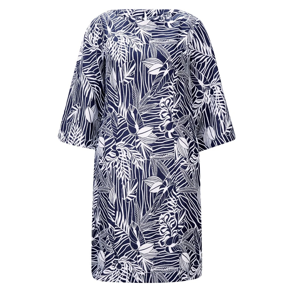 Kleid Aus Leinen mit sommerlich floralem Print und seidigem Glanz. Mit Rundhalsausschnitt, legerem 3/4-Arm sowie hinten Haken und Reißverschluss. 100% Leinen. Maschinenwäsche.