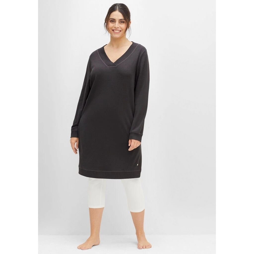 Sheego Sweatkleid »Relax-Kleid«, Aus Interlock, Mit Tiefem V-Ausschnitt